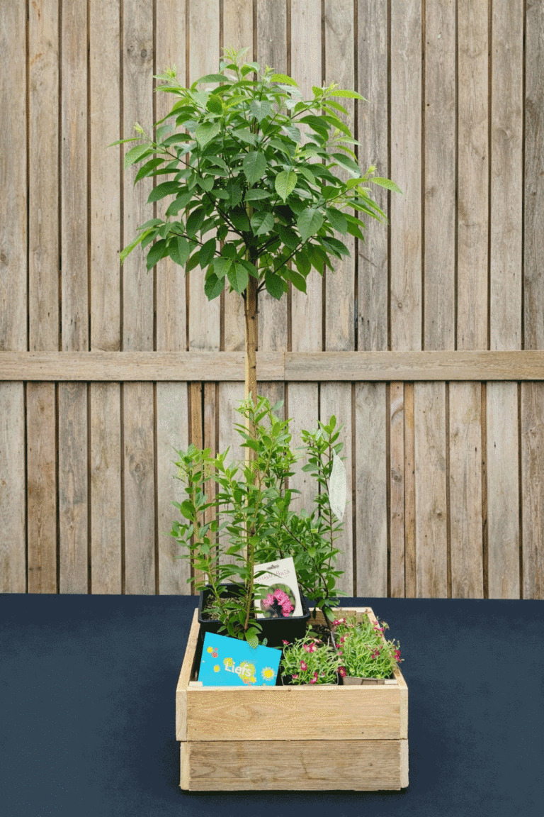 Wanneer u de houten bak van de fruitboom- of struik weer leeg retour brengt, krijgt u van ons 2 plantjes cadeau!