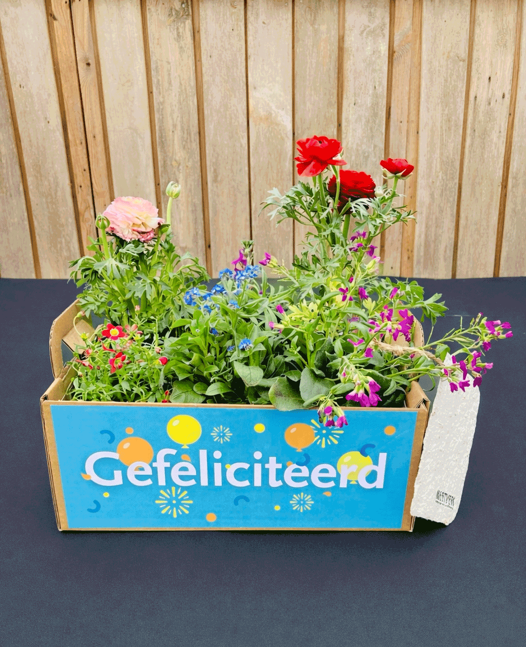 Je ontvangt de planten in een speciaal ontworpen cadeauverpakking.